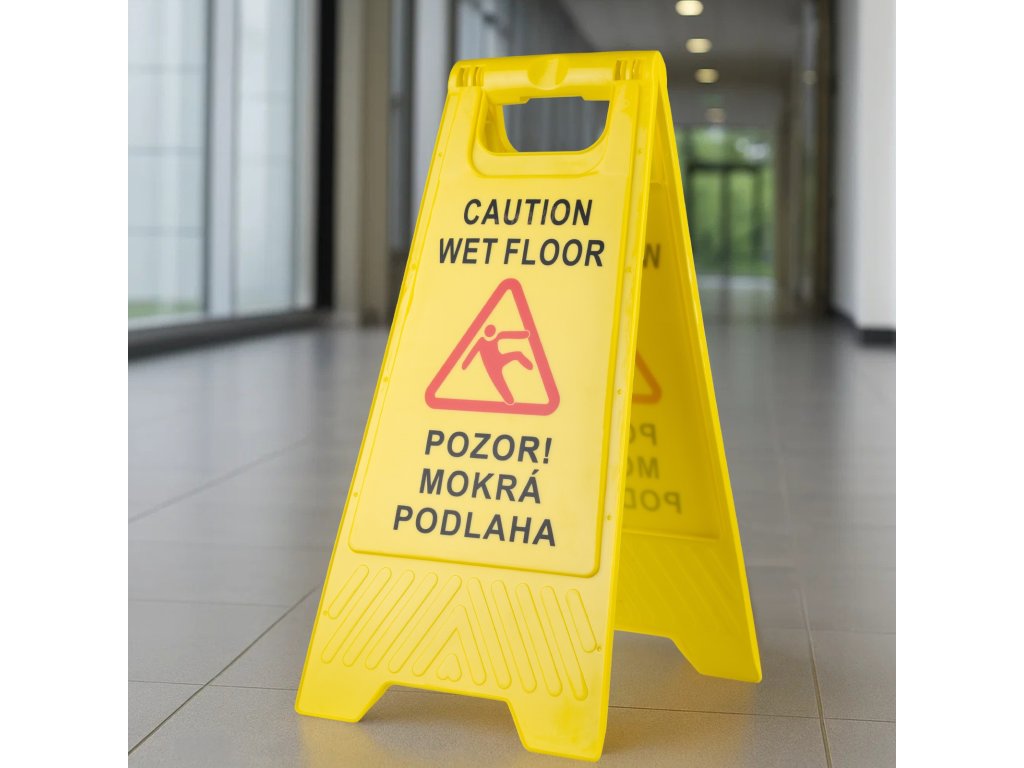 Prevence úrazů začíná u správného varování! Tato vysoce viditelná žlutá bezpečnostní cedule ve tvaru A s dvojjazyčným nápisem (česky a anglicky) je nezbytnou součástí každého úklidu, ať už v domácnostech, kancelářích, obchodech nebo veřejných prostorách. Díky rozměrům 60 × 30 cm a kontrastnímu barevnému provedení (žlutá + černý text) upoutá pozornost a minimalizuje riziko uklouznutí na mokré podlaze.