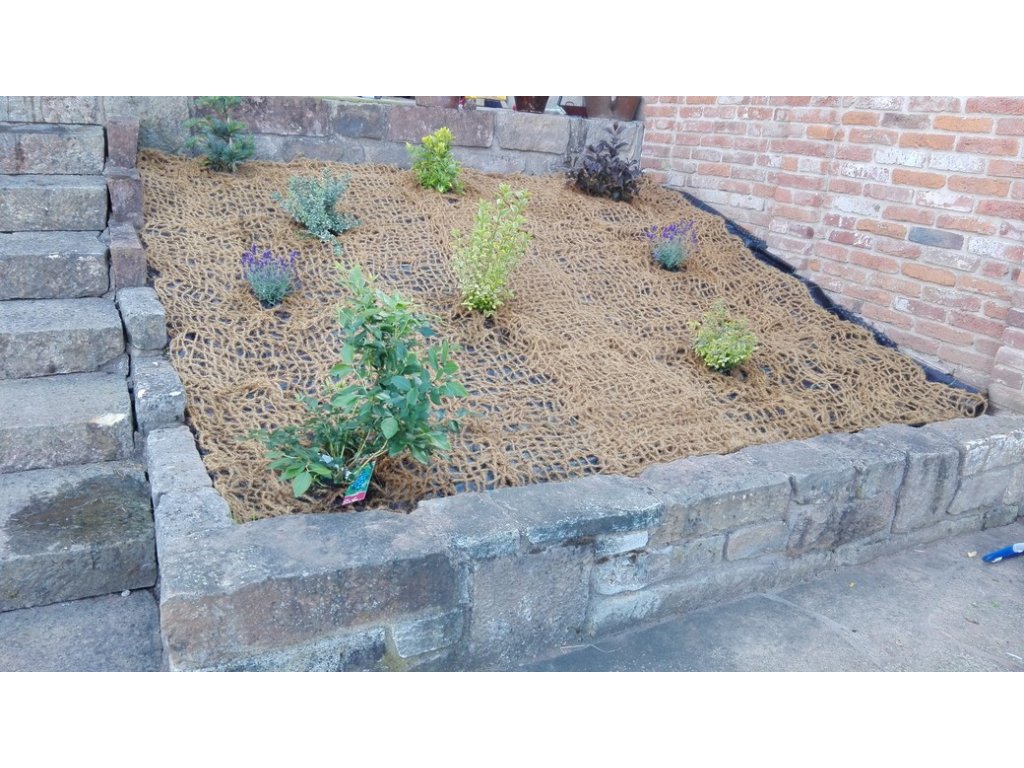 Kokosová protierozní síť je navržena a vyrobena pro snadnou instalaci a adaptabilitu na různé typy svahů, zejména je díky své větší pevnosti a delší životnosti vhodná na strmé svahy a meze. Lze ji upevnit pomocí kotvících ocelových skob, což zajistí její pevnost a stabilitu i v náročných povětrnostních podmínkách. Na nově založený svah nebo skalku doporučujeme nejdříve položit tkanou mulčovací textílii nebo netkanou textílii proti plevelu JUTABOND. a teprve poté tento svah pokrýt mulčovací kůrou nebo kačírkem.