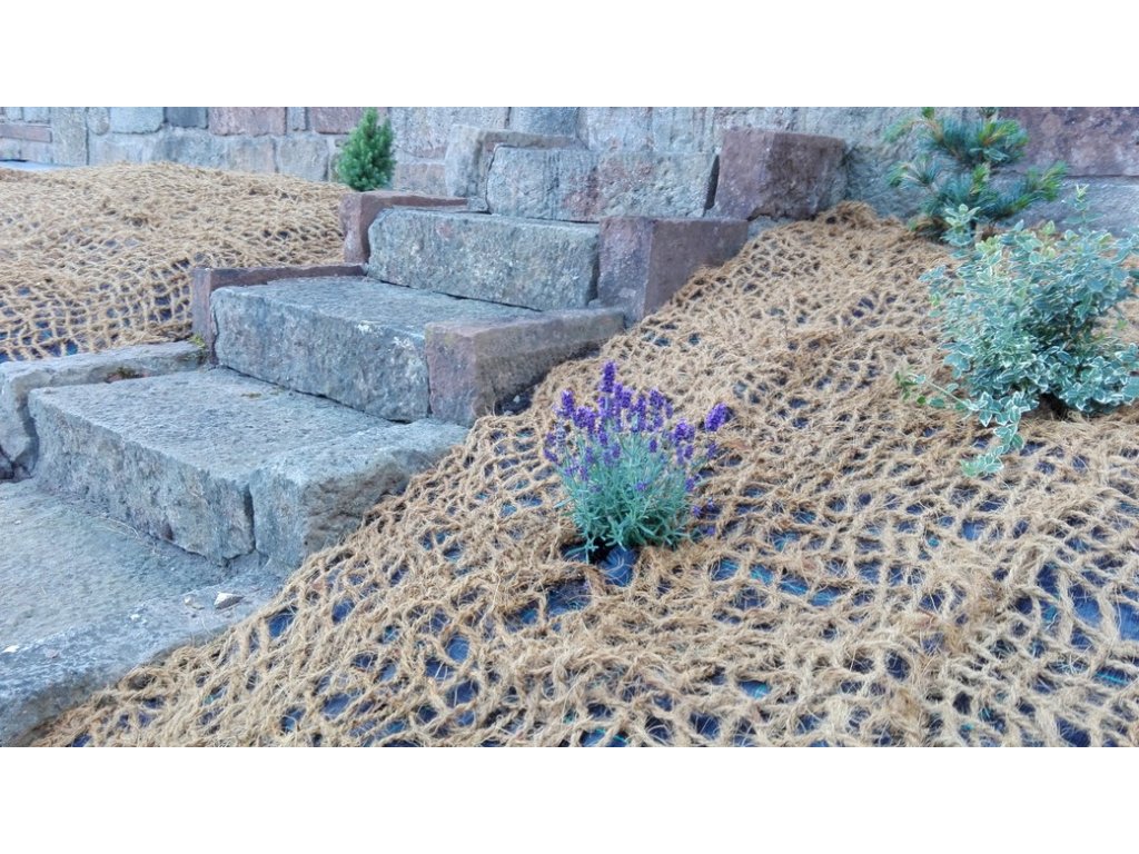 Kokosová protierozní síť je navržena a vyrobena pro snadnou instalaci a adaptabilitu na různé typy svahů, zejména je díky své větší pevnosti a delší životnosti vhodná na strmé svahy a meze. Lze ji upevnit pomocí kotvících ocelových skob, což zajistí její pevnost a stabilitu i v náročných povětrnostních podmínkách. Na nově založený svah nebo skalku doporučujeme nejdříve položit tkanou mulčovací textílii nebo netkanou textílii proti plevelu JUTABOND. a teprve poté tento svah pokrýt mulčovací kůrou nebo kačírkem.