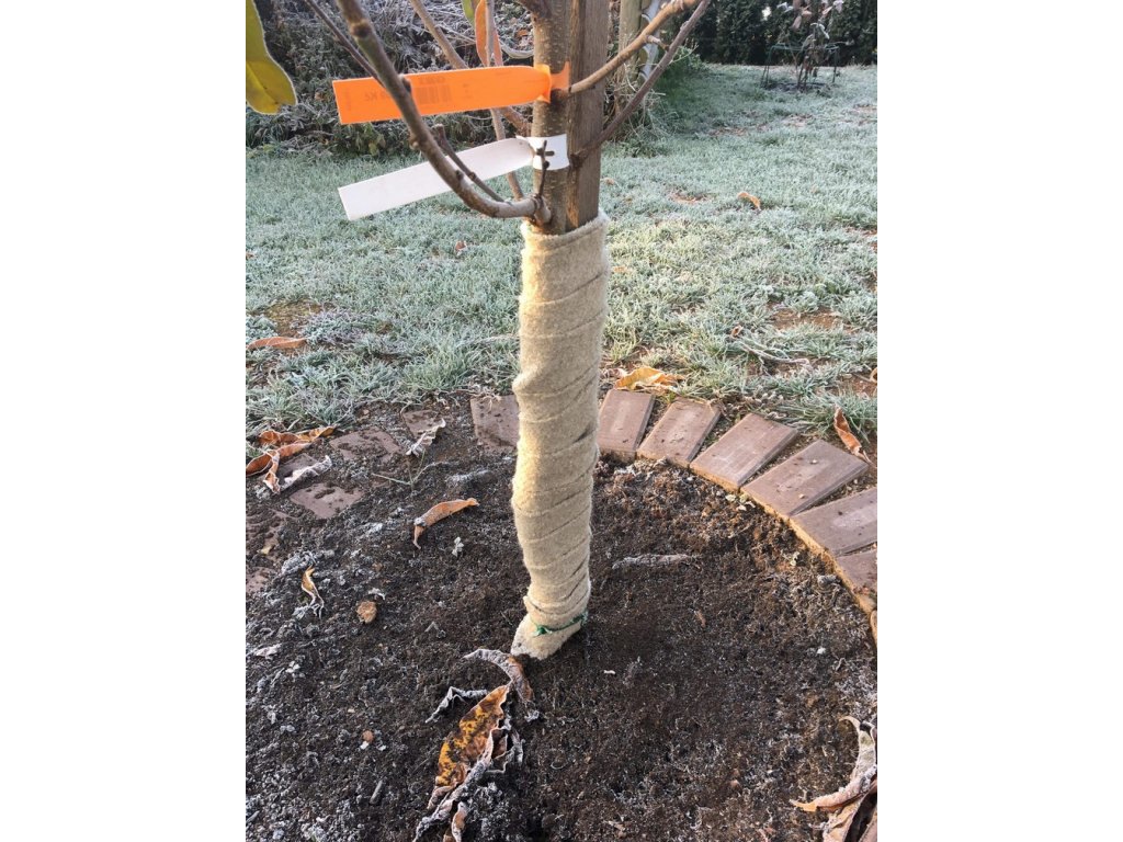 - Proti mrazu: Lněný materiál izoluje kmen a zabraňuje praskání kůry v zimních měsících.