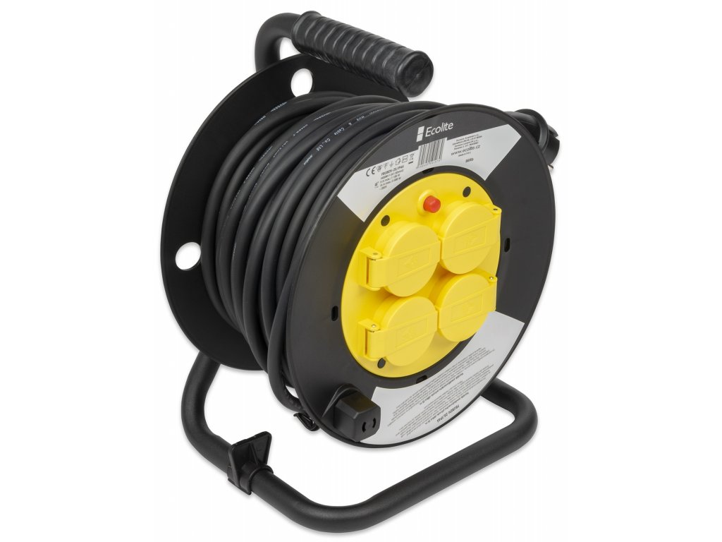 Prodlužovací kabel na bubnu 25 m – IP44, 16A, 3×1,5 mm², 4 zásuvky