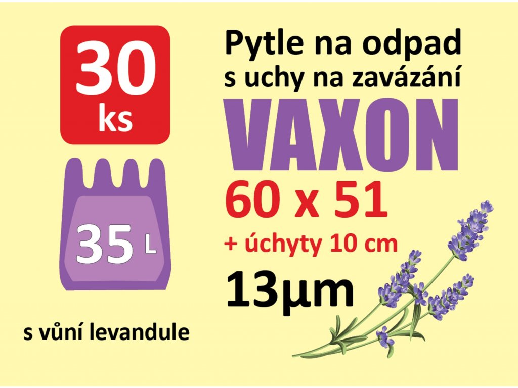 🗑️ Pytle na odpadky Vaxon 35 l – 30 ks, 13 µm, s uchy, fialové s vůní levandule