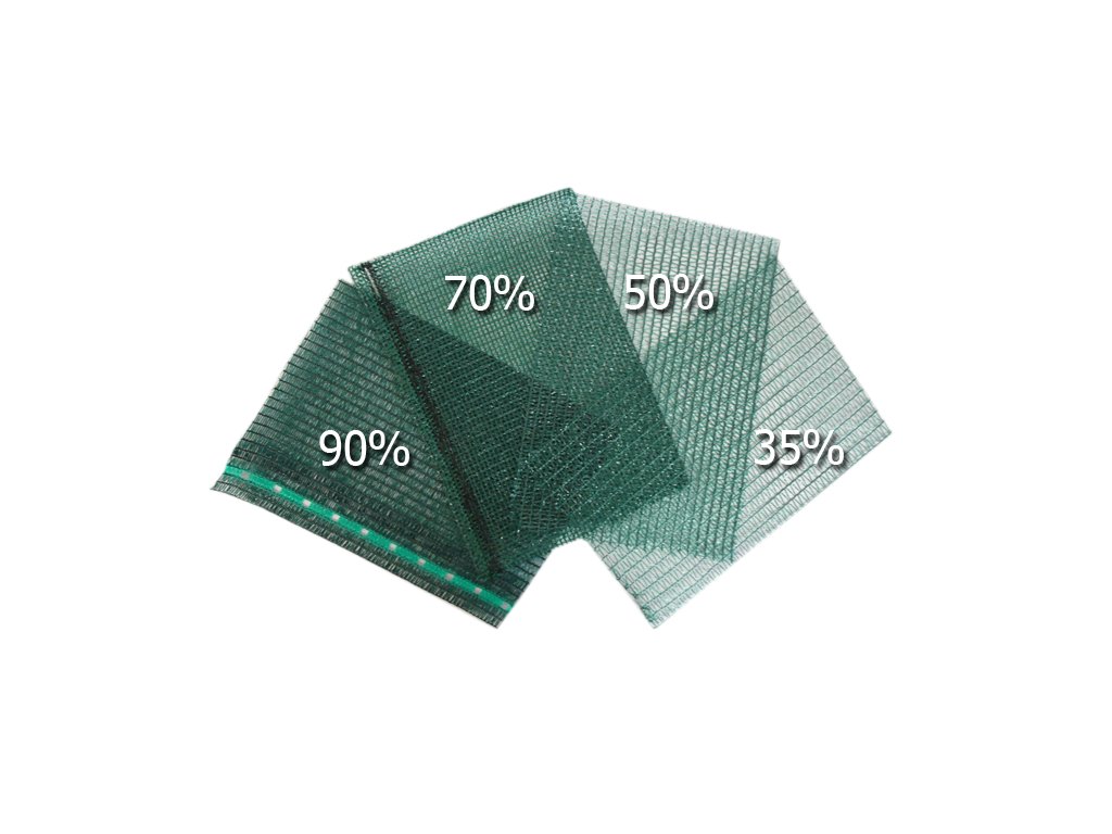 Kvalitní, pevná a odolná síť - stínící tkanina. Vlákno této stínící sítě je vyrobeno z prvotřídních polymerů HDPE s vysokou UV ochranou. Díky hustému tkaní dosahuje tato stínící plachta zastínění 90% i při nižší gramáži cca 110g/m2 a tedy i při nižší ceně. Stínící tkaniny 92% a 90% jsou díky své propustnosti vhodnější do oblastí s častými poryvy větru než rašlové úplety se stíněním 95% nebo 100%.