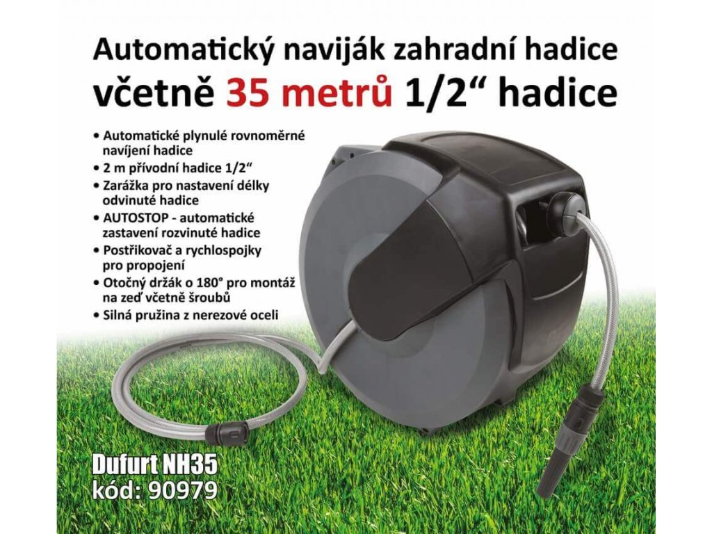- Automatický naviják na hadici s 35m hadicí 1/2" pro snadné navíjení a odvíjení hadice